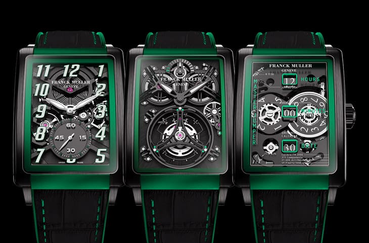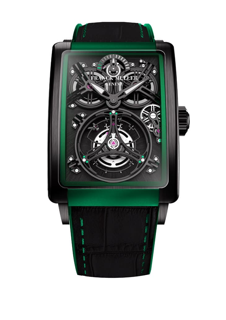 ▲FRANCK MULLER重新設計Long Island系列,推出Long Island Evolution,首波共有三款錶,特點在於黑色鈦金屬錶殼結合綠色的鋁材質內殼,展現濃濃科技感。
