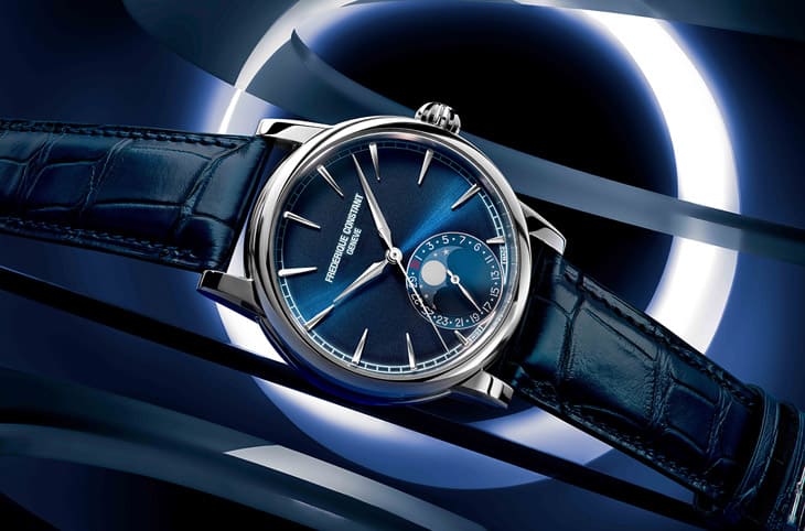 FREDERIQUE CONSTANT康斯登的的旗艦款之一Classic Moonphase Date Manufacture百年典雅月相日曆自製機芯手錶近期推出三款40毫米新作,它們秉持著品牌受到市場喜愛的理念:以合宜價格呈現瑞士製造手錶的優異品質。