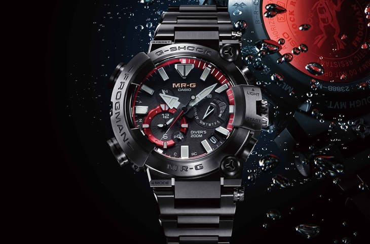▲G-SHOCK以鈦金屬材質製作MR-G Frogman蛙人潛水錶新作,手錶外觀經過鍍黑處理,塑造出強悍低調的印象。