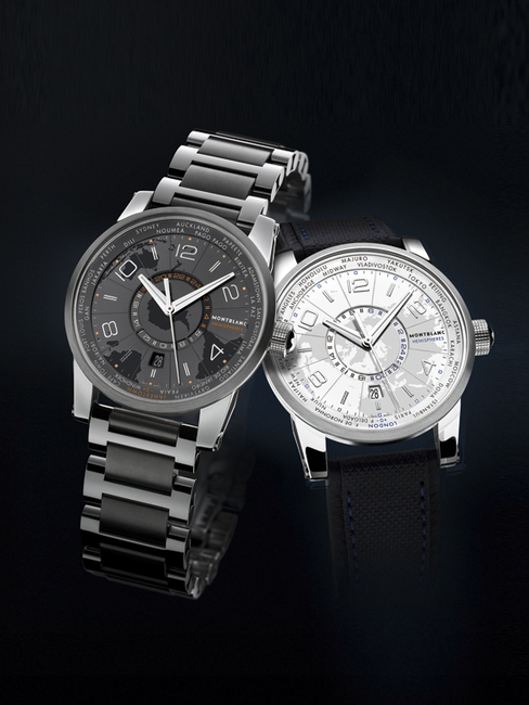 萬寶龍在招牌系列TimeWalker中,為熱愛旅行的人打造出三款多時區手錶,首先介紹的是同一時間掌握全球各地時間的世界時區手錶。中央的時分針指示使用者現居地區時間,而面盤邊緣羅列全球24個時區主要城市,且面盤中心有一枚24小時轉盤,只要兩相搭配指示,便可明瞭全球各時區當下時間。不過,此款世界時區手錶區分為南北半球兩個版本,面盤呈現分別從北極與南極看到的地球投影圖,且北半球款式的世界時區環只有位於北半球的城市,南半球款式反之亦然。也因為南北半球的差異,北半球款上的24小時環採順時針旋轉,24城市名稱卻是逆時針排列,反之南半球款上的24小時環沿著逆時針方向旋轉,但城市名稱則是順時針排列。