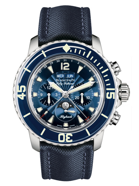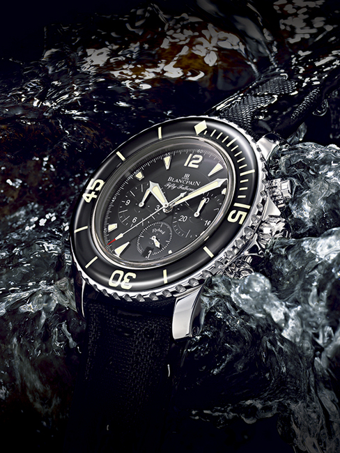 複雜工藝融入潛水手錶:2007年,BLANCPAIN寶鉑發布了五十噚浮動陀飛輪手錶,首次將陀飛輪這項複雜功能帶入深海。這是唯一可以進行水下操作的陀飛輪手錶,並採用了背透技術,它的面世使潛水手錶的製作達到了一個新的高度;另一款將BLANCPAIN寶鉑的創新精神得以充分展現的五十噚手錶是——五十噚飛返計時碼錶,這讓專業潛水人員以及所有航海和水上運動的愛好者們欣喜若狂;2010年,BLANCPAIN寶鉑五十噚全日曆飛返計時月相手錶採用新主力機芯——F185機芯,將日曆功能帶入水下。