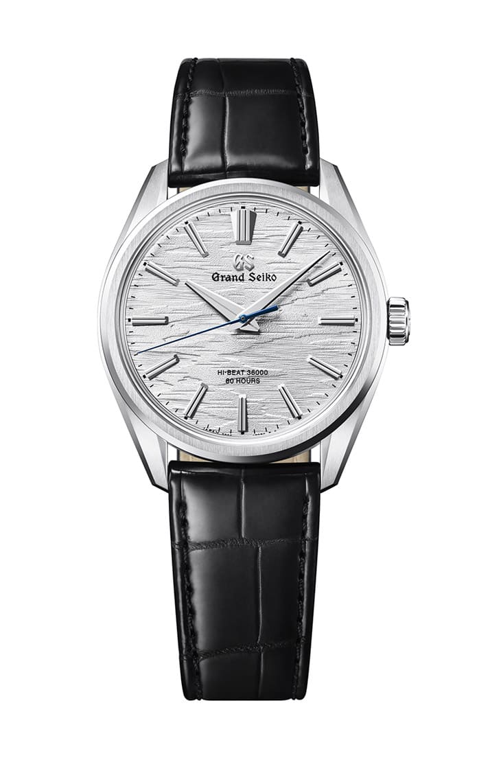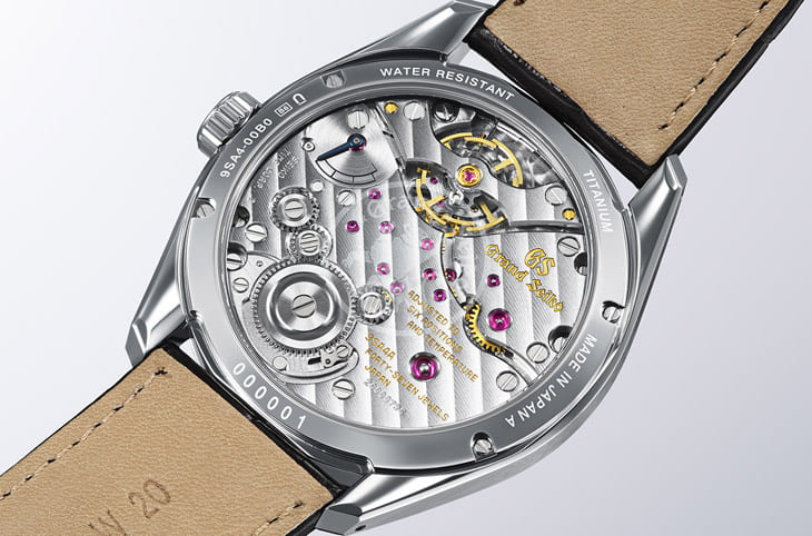 SLGW003搭載的9SA4機芯是GRAND SEIKO睽違半世紀後再創作的高震頻手上鍊機芯,因此這款作品是9S機械機芯系列中的第三位成員,奠定系列中的新里程碑。這枚幾芯的設計依舊留有品牌埋下的設計彩蛋,例如發條擋的造型就是揣摩鶺鴒這種動物而生,鶺鴒也是雫石工坊所在地日本盛岡特有的鳥類,因此佩戴者在摘下手錶替機芯上鍊的過程中,可以看到發條組件呈現猶如鳥嘴在啄食的動作,這讓手錶正面有白樺樹、背面有鶺鴒等充滿在地色彩的植物與動物元素,將品牌的人文精神透過這些設計細節詮釋到位。