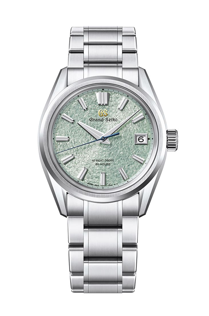 另款機械錶SLGH021面盤一看也能感受到有特別的創作淵源,原來GRAND SEIKO是將位於岩手縣一關市、有著日本第一美溪之稱的「嚴美溪」的溪谷景緻作為手錶設計靈感,因此在白鋼製成的錶殼與鍊帶組合上,可以窺見大三針格局面盤詮釋嚴美溪谷宏偉景色的設計。錶款面盤呈現出迷人的淺綠翡翠色調,而且細看會發現面盤還有很多大大小小的塊狀紋路,GS此舉是想要呈現站在溪旁往下看著清澈的藍綠色水面,透現出溪流底下石頭的畫面。