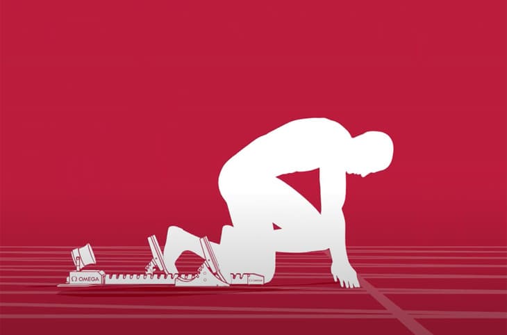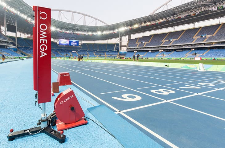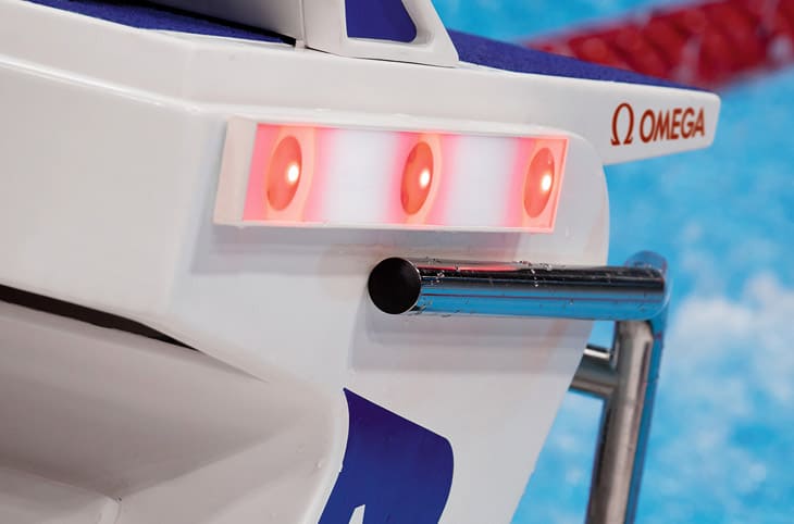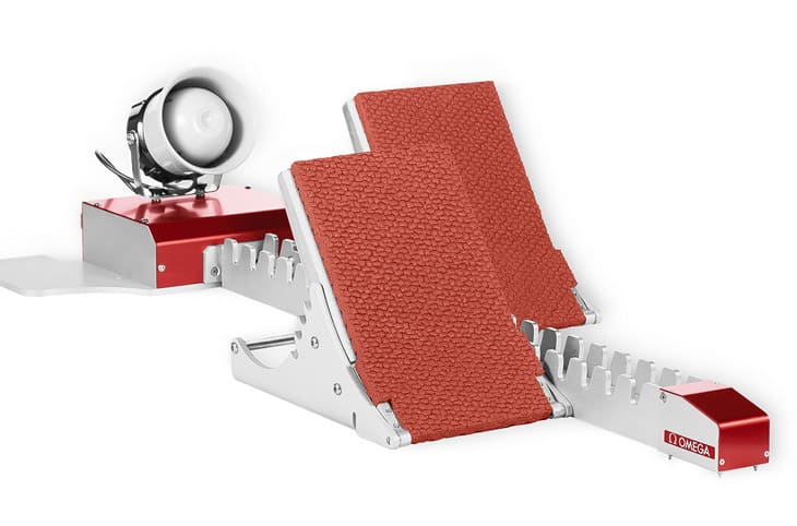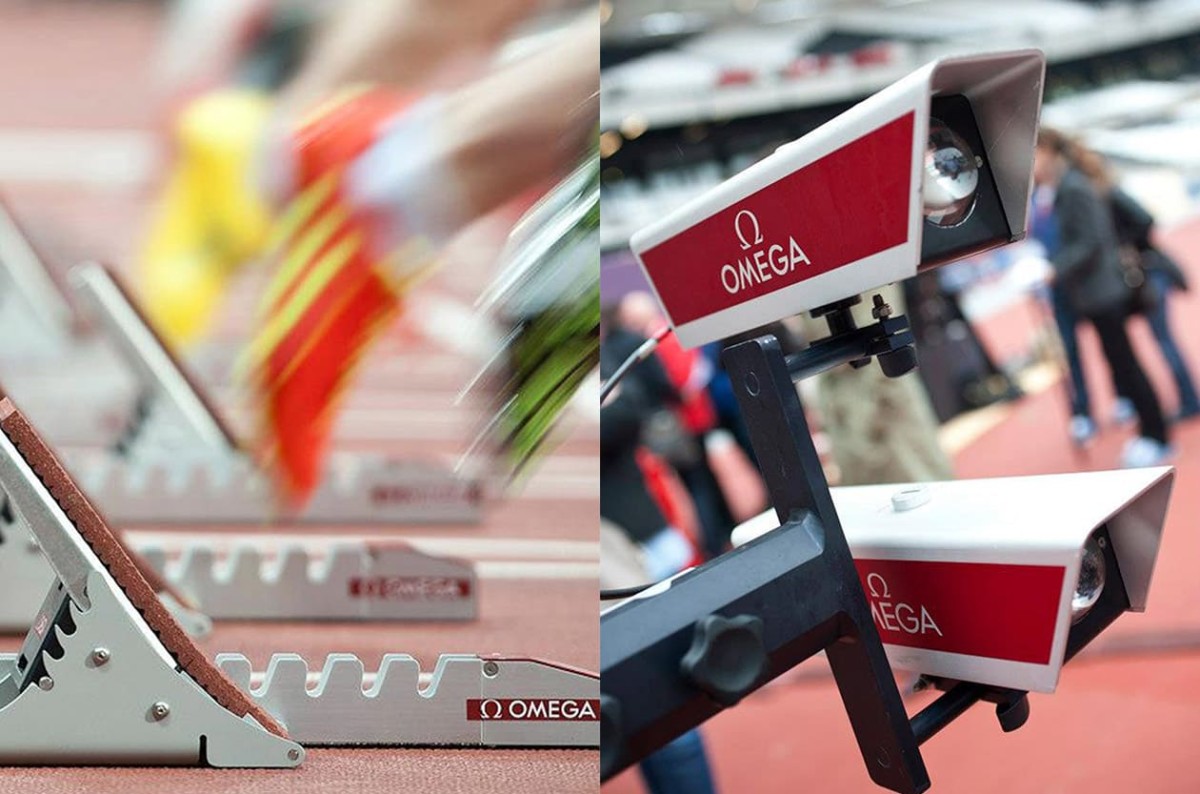 傳統起步槍有個明顯的問題,處在跑道遠端的選手聽到起跑槍聲響起時會比跑道近端的選手稍微延遲。歐米茄的電子起步槍則是連接到每位選手後方的揚聲器上,所以每當裁判按下扳機,脈衝會立即啟動計時器,加上每座起跑台也會亮燈,如此確保所有選手能在同一時間「無時差」地文起跑。
