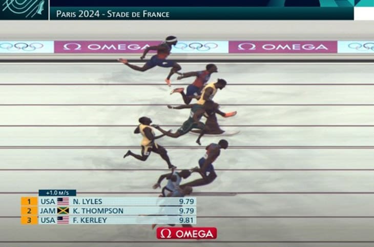 稍早剛進行完的巴黎奧運田徑項目男子100公尺短跑決賽,賽前被看好的熱門選手包括牙買加Kishane Thompson以及美國的Noah Lyles等和同場各國好手展開了一場史上最激烈的大亂鬥,原本Kishane Thompson在比賽中多數時間都處於稍微領先的位置,但是Noah Lyles在比賽中後段開始急起直追,最後他們兩位被記錄到的完賽時間都是9秒79,由於單看決定勝負的時間一時間難以判斷勝者,因此大會宣佈比賽結果將會由裁判檢視照片決定勝負。