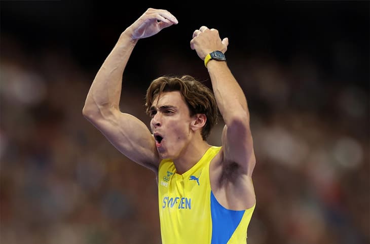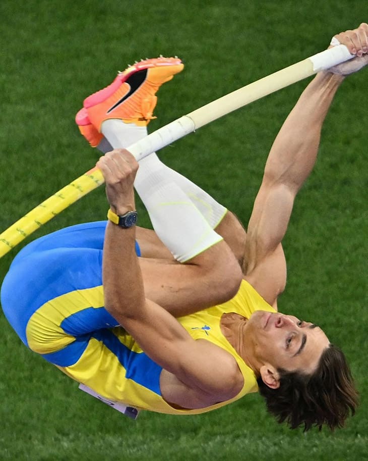 ▲瑞典男子撐竿跳奧運金牌選手Armand Duplantis在比賽時佩戴Aqua Terra 150米 "Ultra Light" Armand Duplantis特別版刷新世界紀錄。