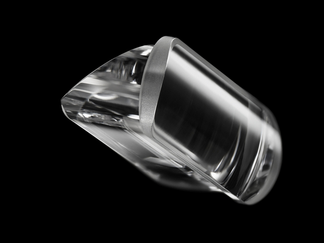 這枚藍寶石水晶稜鏡為楔型,每個角度都經過精密的計算,確保光線能從水平時標上反射(而非折射)為垂直呈現。置於前端的一枚凸透鏡則提供了放大效果。藍寶石水晶要達到光學上的精準,困難度要比一般玻璃高,同時需要投入大量的研發成本與生產上一絲不苟的照料,才能製作出光線反射與彎曲時沒有絲毫扭曲失真的水晶。