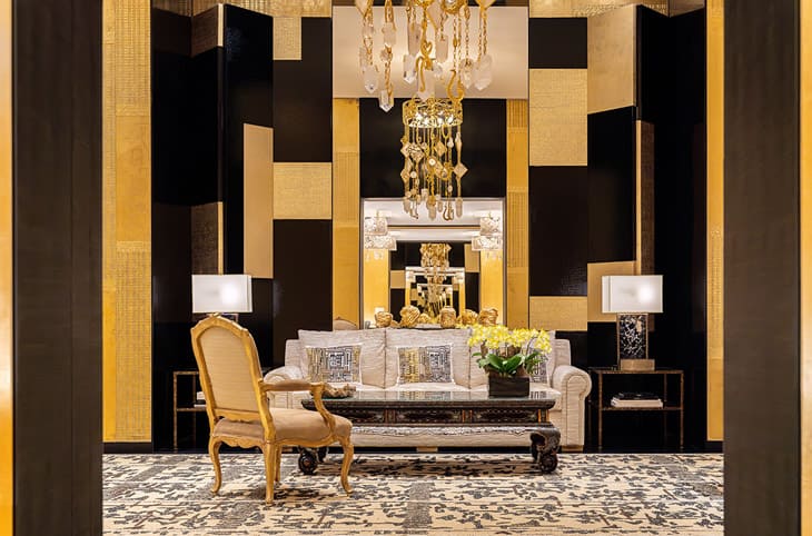 香奈兒亞太區首間腕錶暨高級珠寶旗艦店要請來自紐約與品牌長期合作的知名建築師Peter Marino操刀設計,走進店內會發現設計師以「金色珠寶盒」為概念所呈現的視覺形象,例如採用黑色比利時大理石和玻璃幕牆後裝飾著精緻鑄金黃銅屏風和幕簾等設計,店內的裝潢既有品牌代表性的金與黑配色鋪陳,也有香奈兒女士鍾愛的水晶材質加以點綴,另外CHANEL也大手筆安排許多當代藝術及古董,還有訂製家具與燈具等等,氣勢不凡地呈現出香奈兒在精品領域聲名遠播的大腕地位。