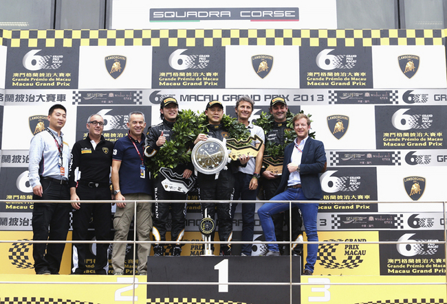 當日,寶鉑於能夠飽覽東望洋賽道最驚險刺激的彎道之一——葡京彎之全貌的澳門葡京酒店文華廳舉辦午宴,邀請媒體朋友及貴賓欣賞賽事。活動首先由藍寶基尼行政總裁Mr. Stephan Winkelmann致辭揭開序幕,並由LAMBORGHINI BLANCPAIN Super Trofeo亞洲挑戰賽協辦人Mr. Cristiano Inverni及寶鉑全球副總裁市場推廣總監Mr. Alain Delamuraz分別介紹Super Trofeo賽事及寶鉑於2013年巴塞爾世界鐘錶珠寶博覽會發表、以頂級瑞士工藝製作的名錶系列。在豐富的午宴後,LAMBORGHINI BLANCPAIN Super Trofeo亞洲挑戰賽於下午2時10分正式展開,多部藍寶基尼Gallardo LP570-4 Super Trofeo跑車在賽道上風馳電掣,賽車引擎的咆哮教眾人緊張萬分。在緊張萬分的爭馳後,澳門站賽事PRO級別三甲車手分別為Max Wiser、Hanss Lin及Toshiyuki Ochiai,而AM級別則由Michael Choi、Keith Chan及Andrea Garbagnati分奪一至三名。