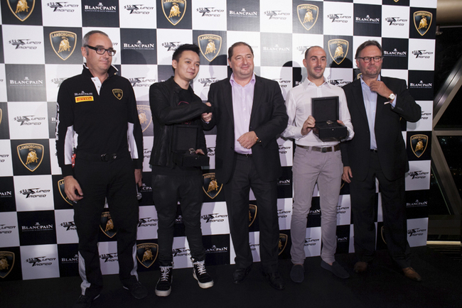 LAMBORGHINI BLANCPAIN Super Trofeo亞洲挑戰賽頒獎典禮於當日傍晚假澳門新葡京酒店之Robuchon au Dôme天巢法國餐廳舉行,由寶鉑全球副總裁市場推廣總監Mr. Alain Delamuraz及寶鉑全球副總裁銷售總監Mr. Marc Junod頒發寶鉑Super Trofeo飛返計時碼錶(特別版)予亞洲挑戰賽之總冠軍Jiang Xin、Max Wiser(PRO-AM級)及Zheng Ting、Steven Lin(AM級),為LAMBORGHINI BLANCPAIN Super Trofeo亞洲挑戰賽2013賽事劃上圓滿句點。