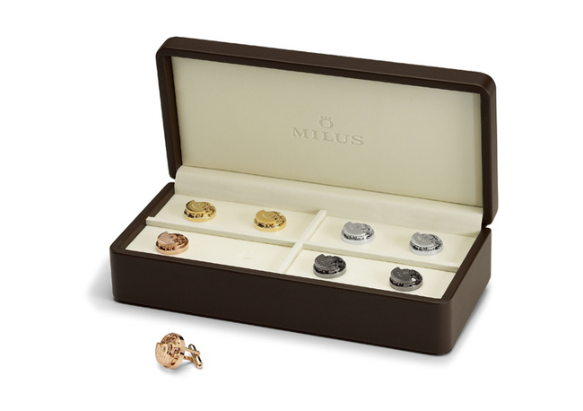 一直以來,手錶都是男士珠寶的代表作。但除此之外,在襯衫袖口上出現的袖扣也同樣是一項備受歡迎的男士飾物。近年袖扣的風潮又再興起,瑞士高級鐘錶品牌MILUS美利時正是這股潮流的倡導者之一。2006年,品牌創作出集擺輪、以圓紋修飾的橋板、以網紋修飾的齒輪、精緻的紅寶石軸承及能隨佩戴者手部活動而360度轉動的自動擺陀等特色於一身的專利袖扣系列,與品牌的重點產品——機械手錶互相呼應,更被意大利OM雜誌選為男士必備的時尚恩物之一。這些設計獨特、別出心裁的袖扣系列,是愛好時尚風格以及完美機械時計的您在即將來臨的佳節餽贈親友或自用的必然之選。