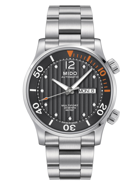 MIDO美度表於2013年推出Multifort先鋒系列雙冠潛水手錶,跳脫一般潛水錶慣有的設計風格,新品以第一代先鋒系列優雅的日內瓦波紋作為錶盤視覺重心,呼應建築的金屬結構性,搭配特色雙錶冠提點出功能性,無論是日常配戴或運動潛水都可輕鬆搭配,此系列潛水手錶擁有三種錶盤與錶帶配色組合,灰色面盤搭配金屬鍊帶、純黑面盤搭配黑色橡膠錶帶、PVD玫瑰金搭配巧克力色面盤輔以同色系橡膠錶帶,呈現出迥異的動感錶情。