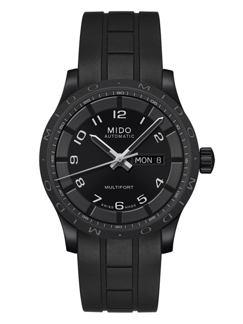 Multifort先鋒系列2013年以創新設計推出Multifort先鋒系列黑武士手錶震憾視覺感官,成為喜愛運動時尚男性必備的潮流單品。系列以澳洲雪梨港灣大橋(Harbour Bridge Sydney)為靈感來源,保有一貫的運動風格精髓,大膽採用簡潔的全黑設計,42mm黝黑大錶盤以立體橡膠錶圈與盤面上 豐富的結構層次,增添濃郁的運動氣息,黑色PVD處理髮絲紋金屬輪圈主導視覺,劃分12時刻,錯落有致的錶圈方格與黑色橡膠錶帶鐫刻相互呼應,反映出設計靈感鮮明的橋樑結構,霧面質感的橡膠錶圈以立體設計為錶款增添動感曲線,低調鐫刻品牌MIDO字樣,低調描繪輕盈律動感。錶款採旋入式錶冠,擁有雙面防眩藍寶石水晶玻璃鏡面,防水可達100米,輔以醒目黑色夜光Super-LumiNova時刻線條與指針,在黑暗中仍可清楚閱讀時間,建議售價NT$34,800;另有銀灰面盤搭配金屬鍊帶款提供選擇,以灰色冷色調打造摩登時髦感,建議售價NT$32,300。