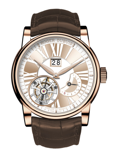 Hommage系列Tribute to Mr. Roger Dubuis(向羅杰·杜彼先生致敬)手錶的設計靈感來自這位創始者於2003年發表的一款時計,並且與其具有相同的功能組合:飛行陀飛輪,是所有爲了消彌萬有引力作用和提高機芯規律性而設計的裝置當中最爲複雜和引人入勝的一種;大日曆顯示,以提高數字易讀性;迷人的弓形動力儲存顯示,有效指示出手錶的上鏈狀態。這個由293個手工精修零件所組成的機芯需要750小時的工作時間來完成,其中220小時致力於達到日内瓦印記認證的嚴格要求,隨後還必須經過四星期同樣嚴謹的測試管控。
