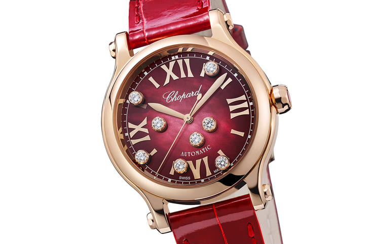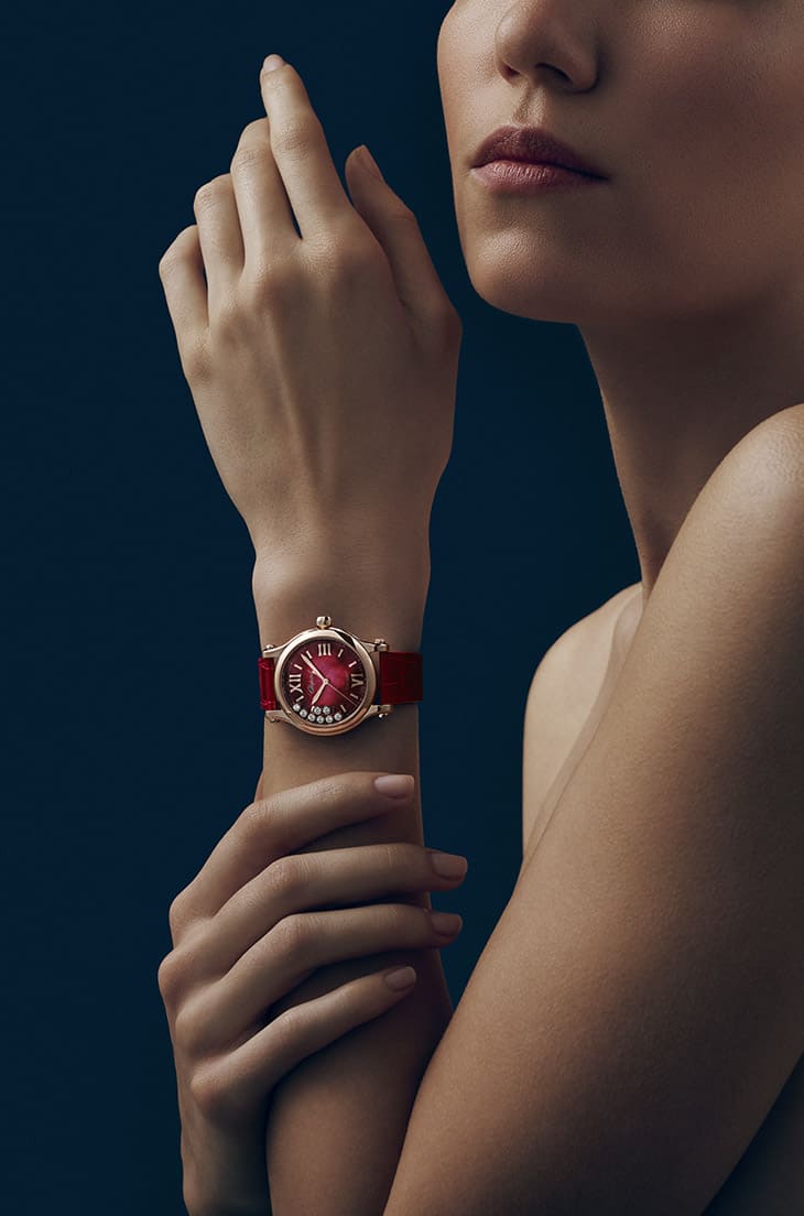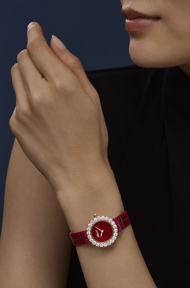 L'Heure du Diamant系列透過CHOPARD標誌性的鑲嵌工藝,使鑽石的淨度大為提升。每當光線穿透鑲鑽錶冠以及錶圈,令鑽石在溫暖的紅色瑪瑙面盤下綻放出耀眼光芒,搭配紅色錶帶與璀璨鑽石遙相呼應。L'Heure du Diamant系列尚有項設計邏輯如出一轍的鍊讚頌鑽石的魔力,每款橢圓形吊墜均以精細手工鑲飾欖尖形切割鑽石,在線條與材質之間取得完美一致的和諧感。這些吊墜遠不止珠寶作品般簡單,它們更化身成真正的護身符,卓越珠寶工藝與創意相遇時守護著當刻所散發的能量,在新年佩戴迎接好運。