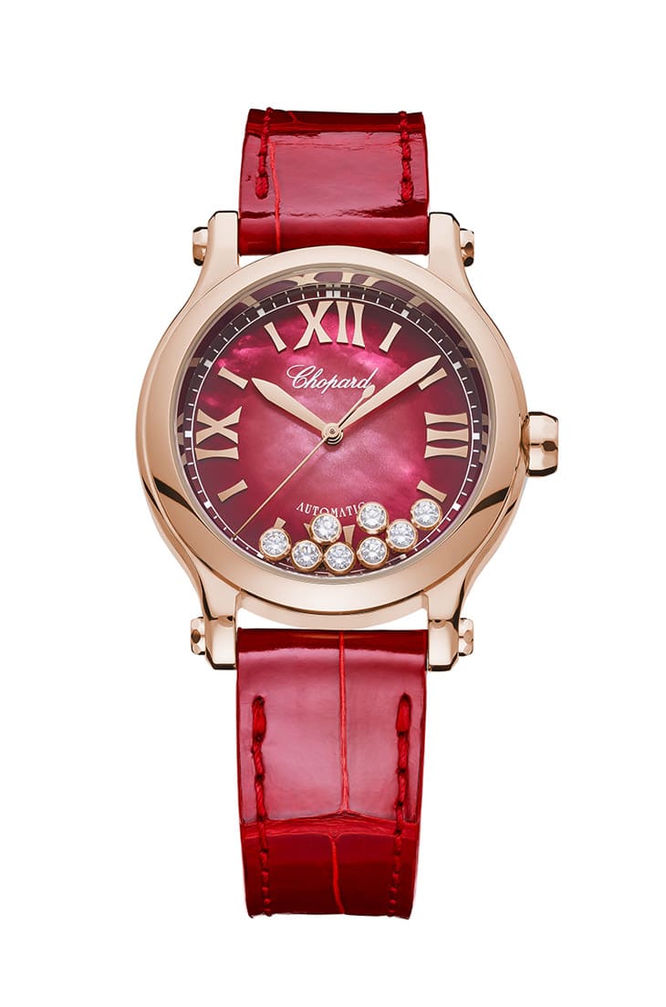 首先看到Happy Sport系列,此系列特色莫過於滑動鑽石時刻轉動好運,喜氣旺旺來,手錶以符合倫理道德標準的18K玫瑰金與不鏽鋼打造,直徑30毫米搭載蕭邦 09.01-C自動機芯。雕紋面盤上2顆滑動鑽石和3顆滑動紅寶石隨著佩戴者的手腕活動而靈活轉動,滿載新年祝福與喜氣的寓意,經典詮釋紅寶石的雋永珍貴。