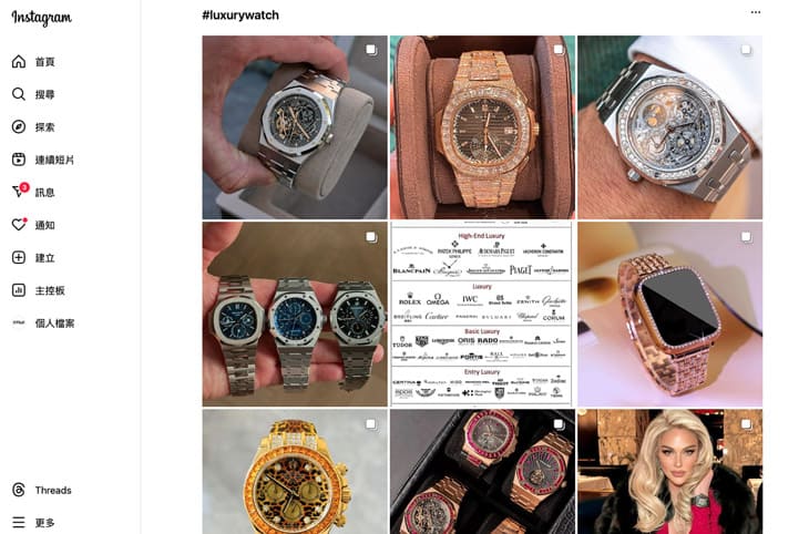 現在網路以及社群平台發達,成為市場吸收手錶新知的重要管道,例如全球許多人都習慣在Instagram上觀看手錶品牌的動態或八卦消息,畢竟手錶產品一出來,它們以照片或影片搭配文字的傳播模式迎合現代人使用社群的喜好,所以IG對於手錶品牌推廣知名度的重要性不容小覷。