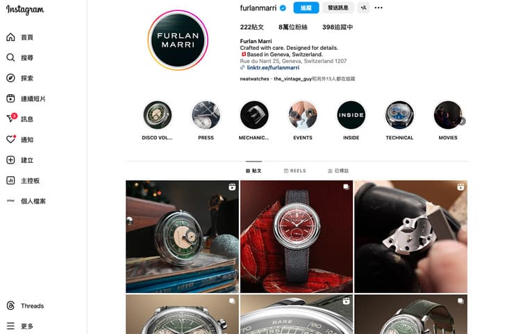 根據統計光是在2024年,FURLAN MARRI的粉絲數便從48,737人增加到75,975人(編按:報導撰寫時粉絲又已經增加至8萬了),成長幅度達55.9%,雖然總粉絲數還是相對小眾,可是一年內有這樣的成長幅度其實相當可觀。FURLAN MARRI除了自己的工藝水準能吸引錶迷和收藏家,他們也很懂得尋求與不同品牌或管道的合作機會,透過聯乘的效應來助長自己的知名度,例如他們和國外鐘錶媒體Time+Tide Watches合作推出錶款、與獨立製錶師Dominique Renaud和Julien Tixier也曾合作,縱使你一開始不知道這個品牌,但是在社群上很容易透過連結意外發現,進而興起想要Follow他們的動機,這個部分FURLAN MARRI目前做得很好,正在快速獲得市場的關注。