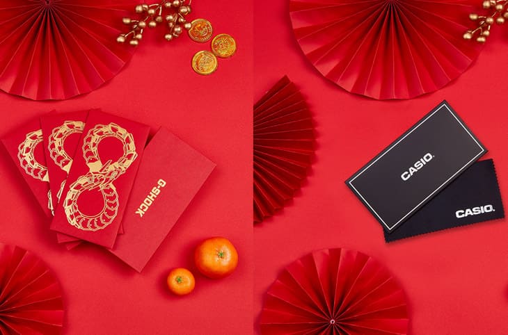 ▲凡是入手卡西歐2025新春福袋,都會獲得一組G-SHOCK蛇年紅包袋與CASIO擦拭布。