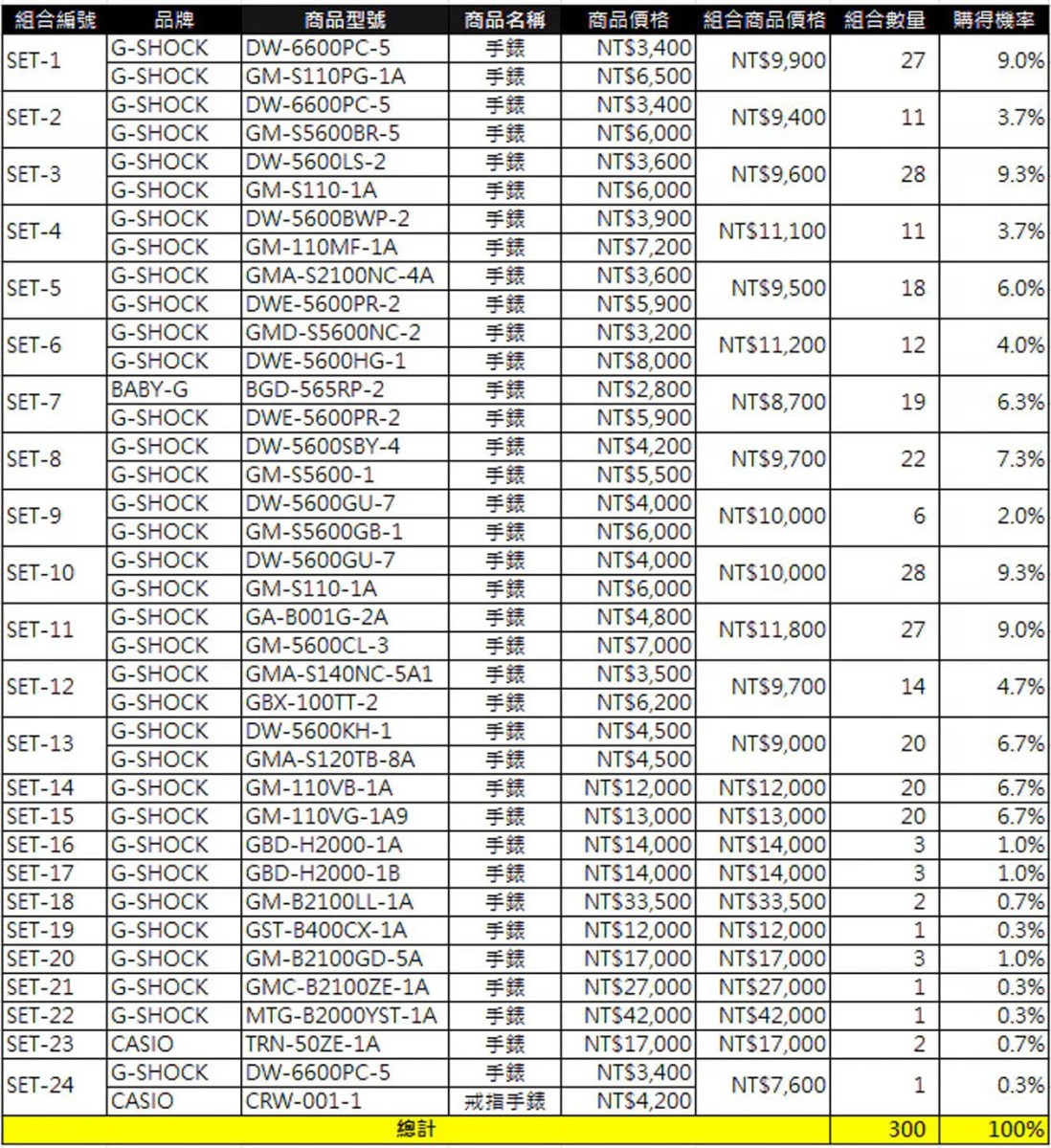 有關卡西歐新春福袋更詳細的活動規則,請參考活動網頁(點此),最後再附上CASIO替大家整理的福袋完整獎品內容組合以及中獎機率,祝大家都能抽到自己想要或能接受的獎品好物。