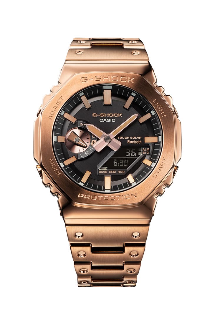 G-SHOCK與風靡全球的線上遊戲《英雄聯盟》超狂話題聯名型號,錶圈和部分錶帶採用金色IP鍍膜,再鍍上黑色,然後將部分去除處理,打造出仿舊外觀。
