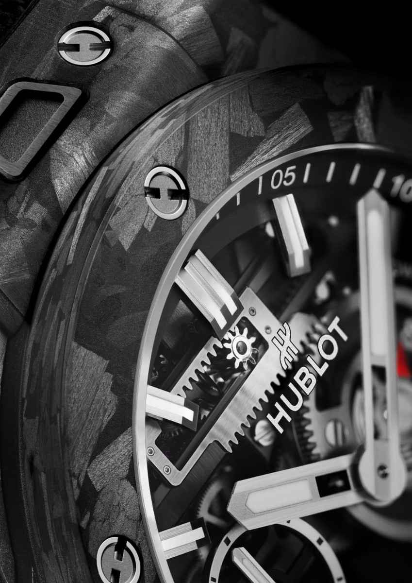 ▲宇舶獨立開發成功的冰霜碳纖維材質首度與Big Bang Meca-10腕錶搭配,其獨一無二的不規則紋理賦予腕錶高辨識度與迷人外觀。