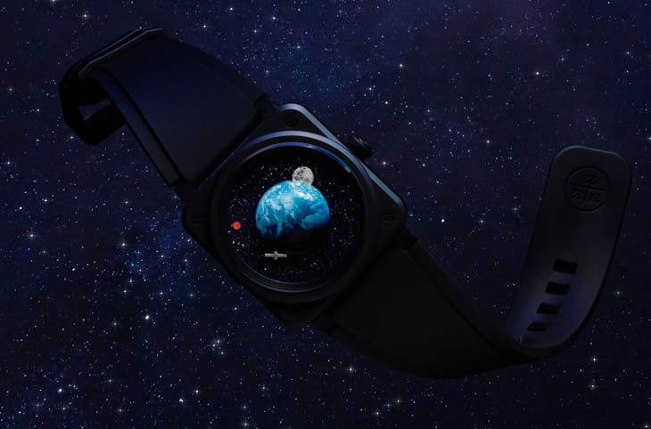 錶款奠基於BR-03的基礎,採用黑色陶瓷製作41mm的方形錶殼,包括手錶配置的黑色橡膠錶帶等都是一般BELL & ROSS屢見不鮮的元素,然而這款錶令人印象深刻的地方在於手錶面盤整個煥然一新。過往我們記憶中的BR手錶常從飛航領域汲取靈感,所以面盤設計往往會和飛機駕駛艙的儀表帶點既視感,只不過BR-03 Astro這次的靈感已經超過了一般的飛行,直衝上太空範圍。