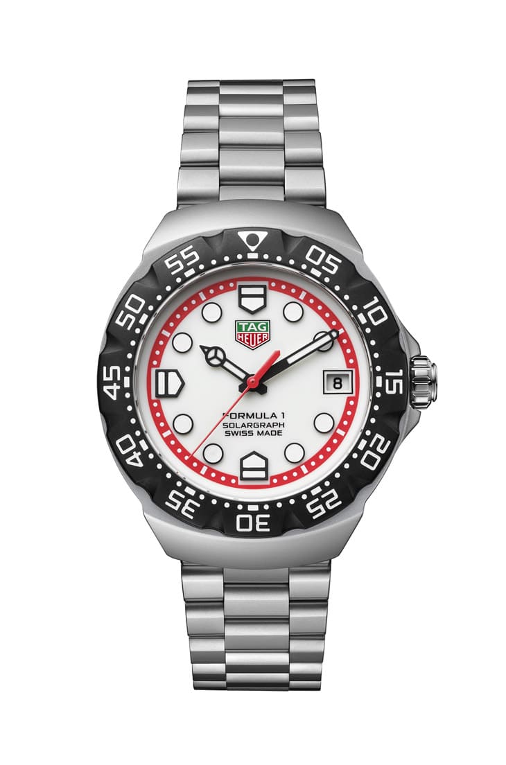Formula 1 Solargraph系列復刻1986年首款傳奇Formula 1設計,主力作品採用38mm錶殼尺寸、噴砂不鏽鋼與DLC鍍層等升級裝飾工藝,並融入更符合人體工學的設計,搭載突破性的Solargraph太陽能機芯,電力續航最長達10個月。此系列採用全新創新材質:由泰格豪雅實驗室研發的色生質尼龍纖維(Polylight)材質打造部分款式的錶殼及錶圈,這種創新材質具備輕盈、經久耐用、無限色彩可能性,為此系列打造出九款吸睛配色,詮釋賽車運動的速度感與活力。