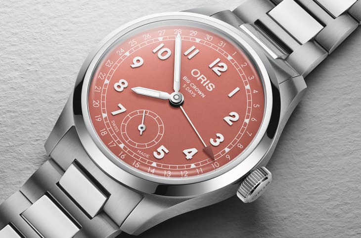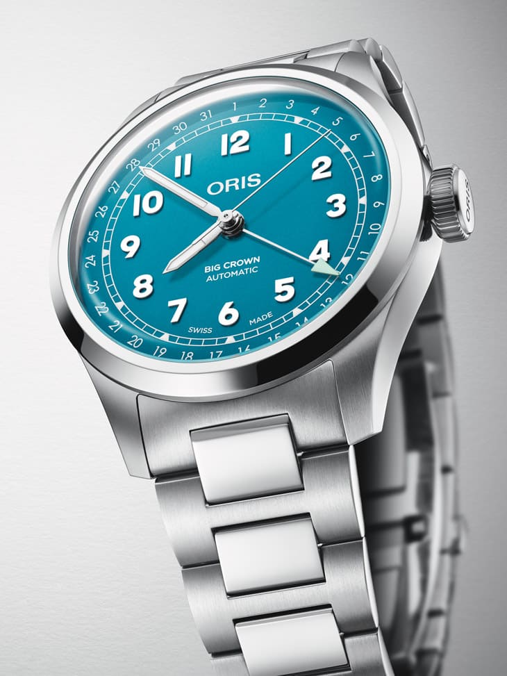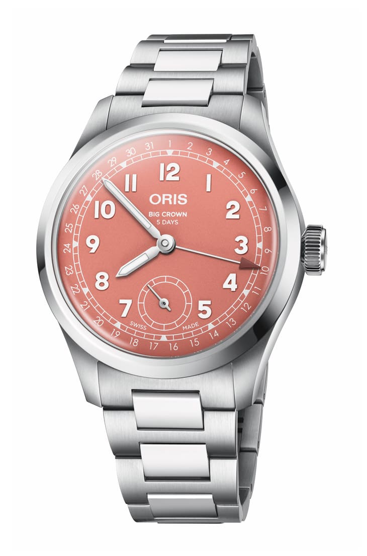 Big Crown飛行錶誕生於1930年代,創作源頭是為方便飛行員戴著手套時仍能調校手錶,因此整體採用清晰易讀的阿拉伯數字、大尺寸錶冠,以及紅色箭頭日期指針搭配面盤外圈的刻度指示各項基本時間資訊。歷經近90年演變,這款手錶憑藉經典外型與實用性,向來是ORIS受到市場喜愛的作品。