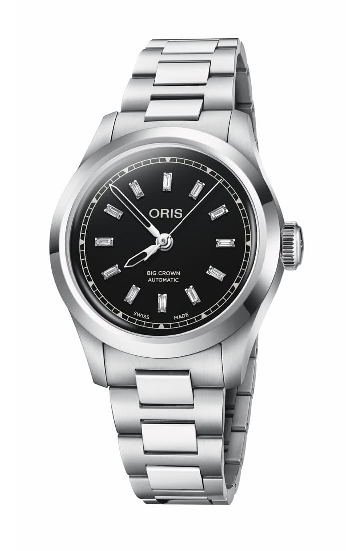 至於女性市場部分,ORIS也增加了34mm款式展現品牌設計誠意,除了溫潤的米棕色面盤,更有鑲嵌12顆實驗室培育矩形切割鑽石時標的黑色款式,低調奢華兼具前瞻設計感,後者選用實驗室鑽石與環保材質,不僅提升產品價值,更回應現代消費者對環保議題的期待。