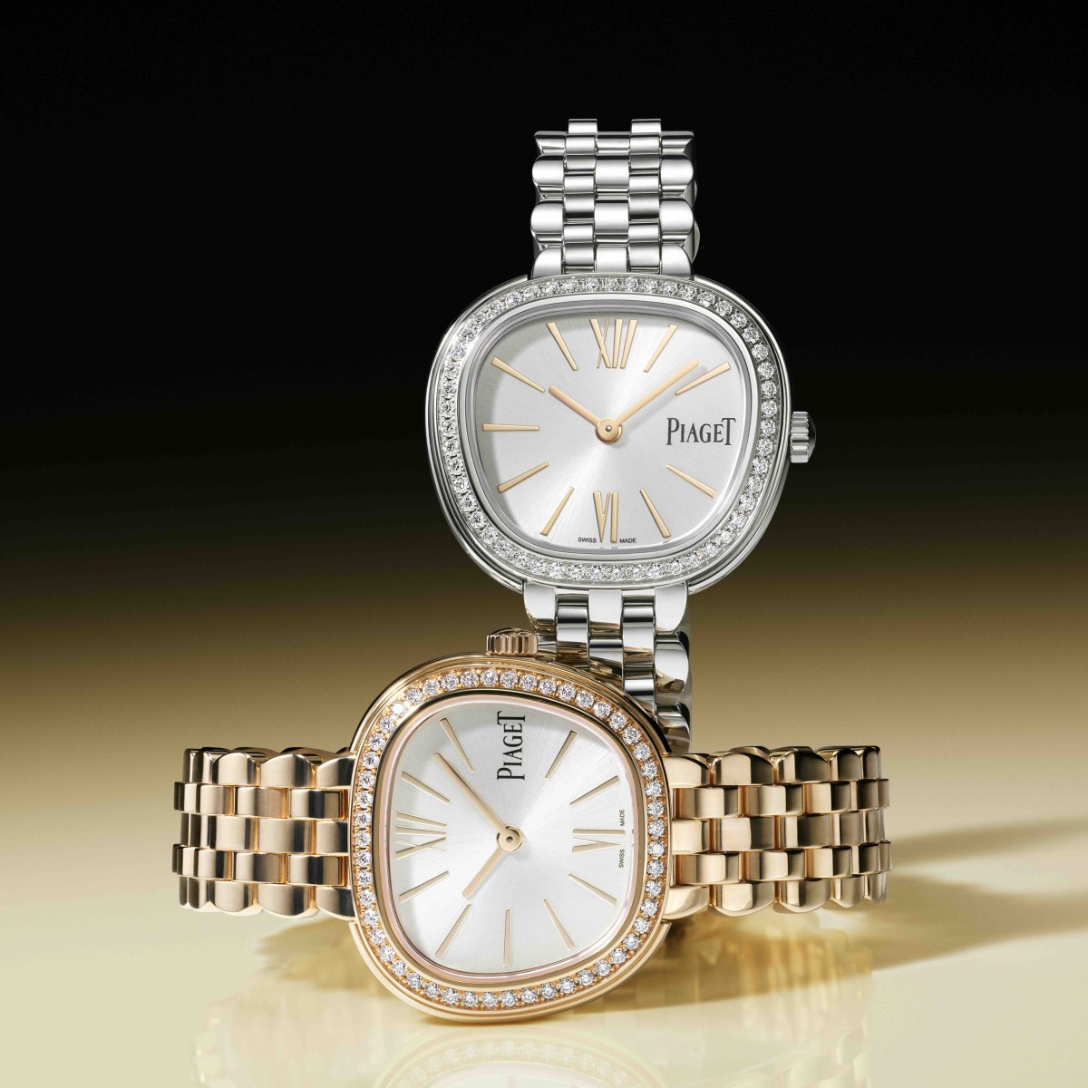 像是製作總工時達200小時的SIXTIE系列18K玫瑰金白色蛋白石鑽石長項鍊錶,錶殼鑲嵌2顆白色蛋白石及 532顆圓形切割鑽石,以白色蛋白石作為面盤,搭載伯爵355P石英機芯,為女錶作品提出融合今昔優點的新穎詮釋。另一條同樣搭載355P機芯的SIXTIE系列Swinging Sautoir 18K玫瑰金珍珠母貝面盤鑽石長項鍊錶,鑲嵌30顆圓形切割美鑽,在伯爵全球品牌大使全智賢演繹之下,展現1960年代獨有的絢麗風格,彷彿可見品牌與名流雅士們所激盪出如燦陽般奪目迷人的黃金時期。
