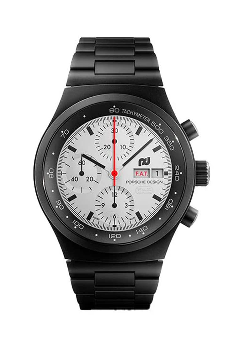 ▲PORSCHE DESIGN Chronograph 1 F.A.T. 2025版採黑色鍍層鈦金屬錶殼、全夜光面盤,具飛返計時功能,搭載自製機芯,完美融合復古與現代,致敬賽車精神。