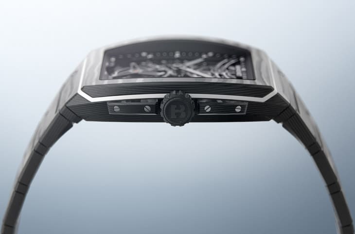 ▲500層高密度碳纖維錶殼與鍊帶,兼具強度與重量優勢,並提供色彩客製選項。