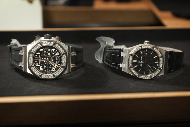▲ 愛彼也帶來了「皇家橡樹系列」」鑲鑽女錶,別看它陽剛的外形就先下定論,佩戴起來可是完全不同的感覺。