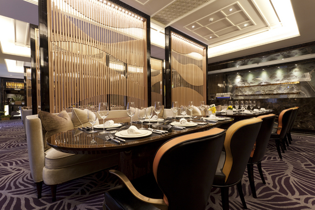 ▲ 德朗餐廳的裝潢特別邀請到曾為杜拜帆船酒店餐廳設計的梁志天大師操刀,以黑色與金色為主調,呈現奢華的頂級用餐空間。