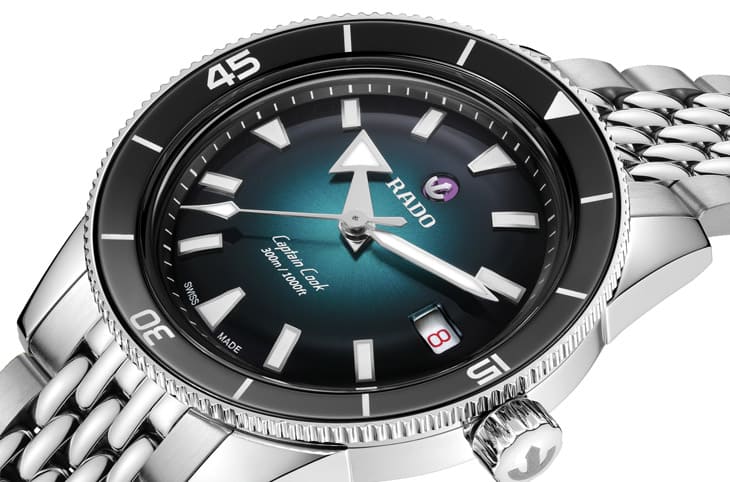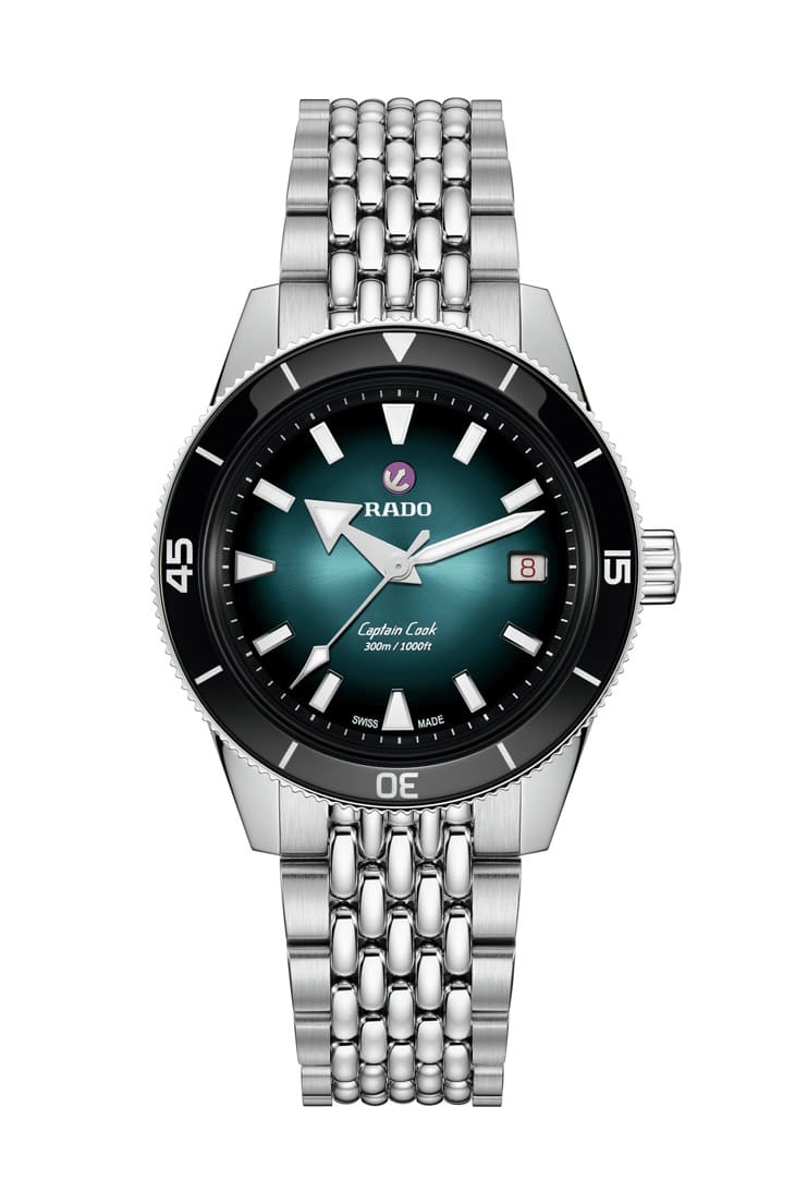 先來看Captain Cook庫克船長系列。這款誕生於1962年的潛水錶,一直是RADO最受矚目的人氣作品之一,經過2017年的復刻回歸後,它逐漸發展出完整的產品線,並成為熱愛復古風格與現代機能的錶迷首選。今年,品牌將39mm的尺寸納入常態款式,帶來更靈活的選擇空間。
