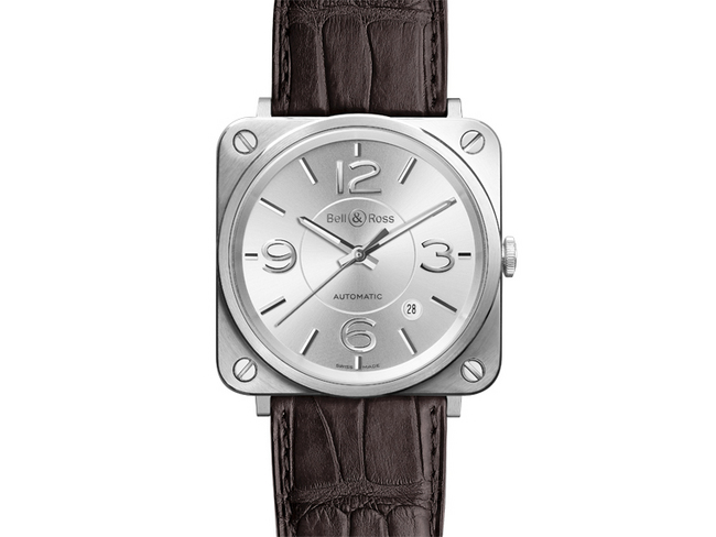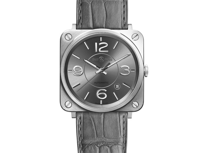 延續AVIATION BR S系列成功之道,BELL & ROSS推出BR S Officer Ruthénium 及BR S Officer Silver兩款華貴優雅自動手錶款式,細節設計一絲不苟,深淺對比的灰色主調散發高雅之感。BR S Officer Silver型號的指針、數字及時標,與銀色太陽射線紋錶盤的色調和諧相配。BR S Officer Ruthénium型號的深灰色太陽射線紋錶盤與錶帶顏色配對,與銀灰色錶殼形成悅目的對比。