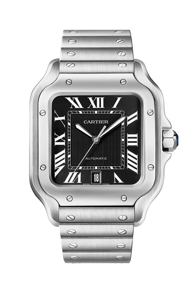 CARTIER Santos de Cartier系列一直以方形錶殼和一體式運動手錶的美學,成為鐘錶圈裡的經典作品,2025年品牌帶來兩款大型新作讓人有耳目一新的感覺,一款是全鈦金屬款,另一款則是夜光黑面不鏽鋼款,兩只錶的尺寸相同,錶寬都是39.8mm、錶耳對錶耳長47.5mm,戴起來貼合手腕,方形設計讓視覺感比圓形手錶更鮮明,但整體比例恰到好處,兼顧功能性與優雅感。