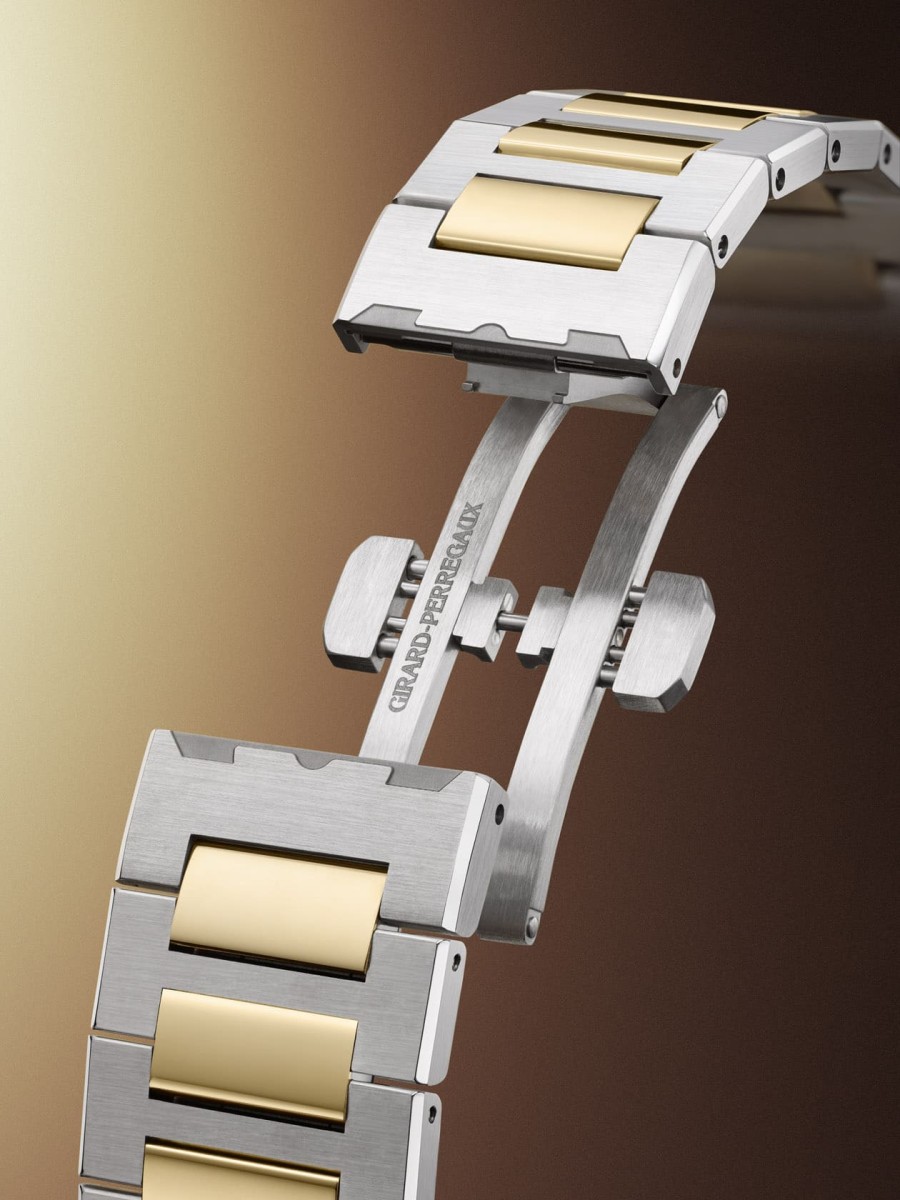 新設計特別將H形鍊節略為縮短,使整體更貼合手腕弧度,佩戴時順滑而不鬆動,此外,鍊帶向錶扣方向逐漸收窄的造型,除了提升美感,也強化了人體工學效果。最讓人驚喜的是,GP芝柏表為這條一體式鍊帶設計了「即時微調系統」,三折式錶扣至多可微調4mm,此範圍區間足以應對氣溫變化或戶外活動等不同情況下手腕的舒適度。對收藏家而言,這種在細節處體現誠意的設計,往往比任何複雜功能更能打動人心,因為這意味著品牌真正了解佩戴者的日常與需求。