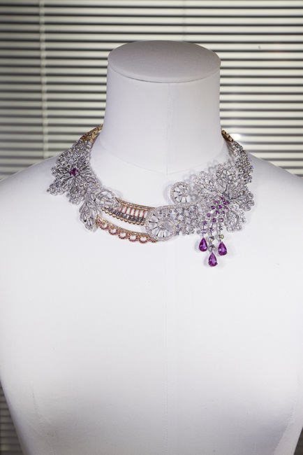 ▲ 「Couture Précieuse項鍊」是本次展出作品中單價最高的單品,售價約NT$ 24,762,000,大量的鏤空展現伯爵的傲人工藝,也創造出如絲絹的輕柔質感,如同奢華耀眼的花邊禮服,纖細無比。