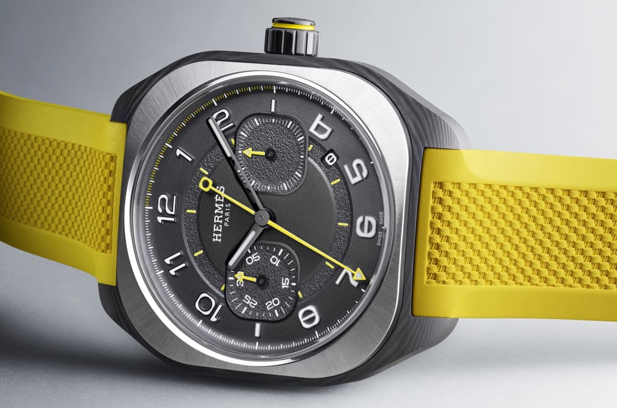 HERMÈS再次讓人眼睛為之一亮,推出H08 Chronographe,這款手錶延續了2021年由Philippe Delhotal設計的H08系列核心精神:在張力與流線之間找到平衡,將當代設計融入運動錶款之中。新作以鮮明的「那不勒斯黃」細節點綴,使整體運動氣息更具活力。