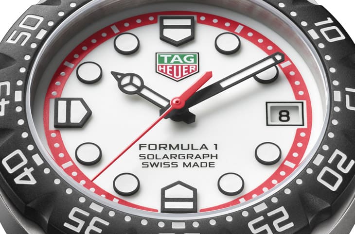 Formula 1 Solargraph手錶最迷人的地方,在於它平衡了復古靈魂與現代佩戴感,原版Formula 1的35mm纖維玻璃錶殼,到了Solargraph版本變為38mm不鏽鋼結構,錶殼厚度僅9.9mm,這意味著它在視覺上更成熟,但依舊保留輕盈特質。整體輪廓維持經典的十二邊形錶圈,卻以更銳利的稜線與噴砂表面強化層次感,像是將1986年的設計以「高解析度」重製。重新設計的錶耳與錶冠細節更顯功力,錶耳微拱上揚,使光線能在邊緣游走,帶出更動態的線條美;錶冠改為齒輪狀設計,並加入護肩結構,不僅造型更堅固,也更貼近現代運動錶的觸感需求,這些細微調整,讓人既能一眼認出Formula 1的經典輪廓,又感受到泰格豪雅當代工藝的洗鍊程度。