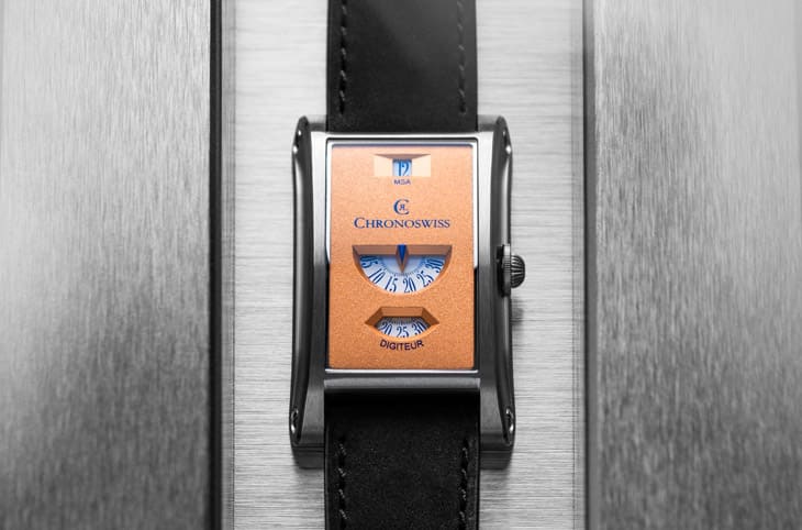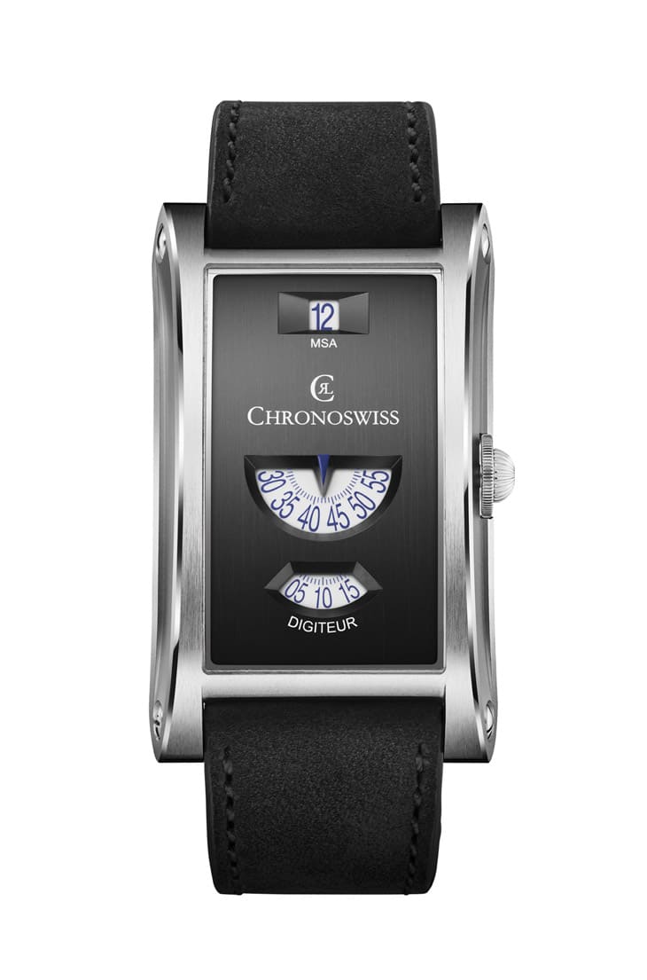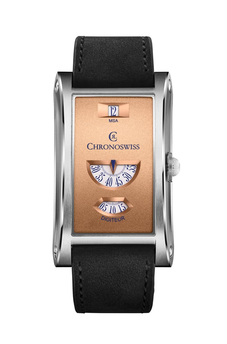 2025年他們家推出的Neo Digiteur,是對品牌歷史的延伸,而非單純的概念實驗。其靈感源自1920~30年代的跳時錶,當時的無指針設計以機械精密結構和大膽美學挑戰了時間的呈現方式。CHRONOSWISS早在2005年便以初代Digiteur將這股精神現代化,今日的Neo Digiteur則進一步將此概念帶入日常佩戴領域,首次採用不鏽鋼錶殼,讓經典設計更貼近現代生活。