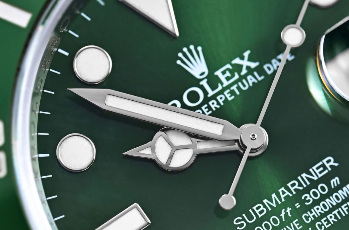 然而,真正讓綠色締造壓倒性人氣的,是2010年登場並一戰封神的116610LV "Hulk",稱它是現代水鬼的里程碑毫不為過,它擁有綠色陶瓷Cerachrom錶圈,更搭配上一片光影豐富的綠色放射紋面盤,面盤會隨光線變化展現不同層次:從深邃森林綠到明亮祖母綠,視覺效果極其迷人。
