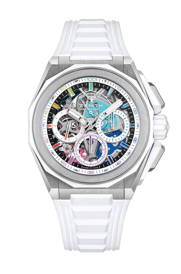 鈦金屬、白色陶瓷材質/El Primero 9004自動上鍊機芯/時、分、小秒顯示/計時碼錶功能/藍寶石水晶鏡面、透明底蓋/防水200米/錶徑45mm/限量100只/參考價:NT$ 724,300