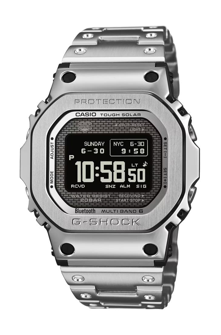 榜單壓軸的GMW-BZ5000D-1是卡西歐與AI技術合作的最新成果,它不只是材質升級,而是從結構到重量分佈都透過 AI模型重新模擬,以取得更舒適且更具韌性的外殼設計,錶殼延伸至錶耳的構造,以及金屬與樹脂的雙層緩衝系統,讓抗衝擊能力進一步提升。顯示規格也是重大進化:新增的MIP LCD提供更高對比、更寬視角,在戶外或強光環境判讀更清楚,改良版的太陽能系統也讓能源效率全面提升,維持全金屬系列一向的便利性。這款錶保留5000系列的經典意象,同時把結構與科技推到新高度,是今年最具「收藏價值」與「未來感」的G-SHOCK。