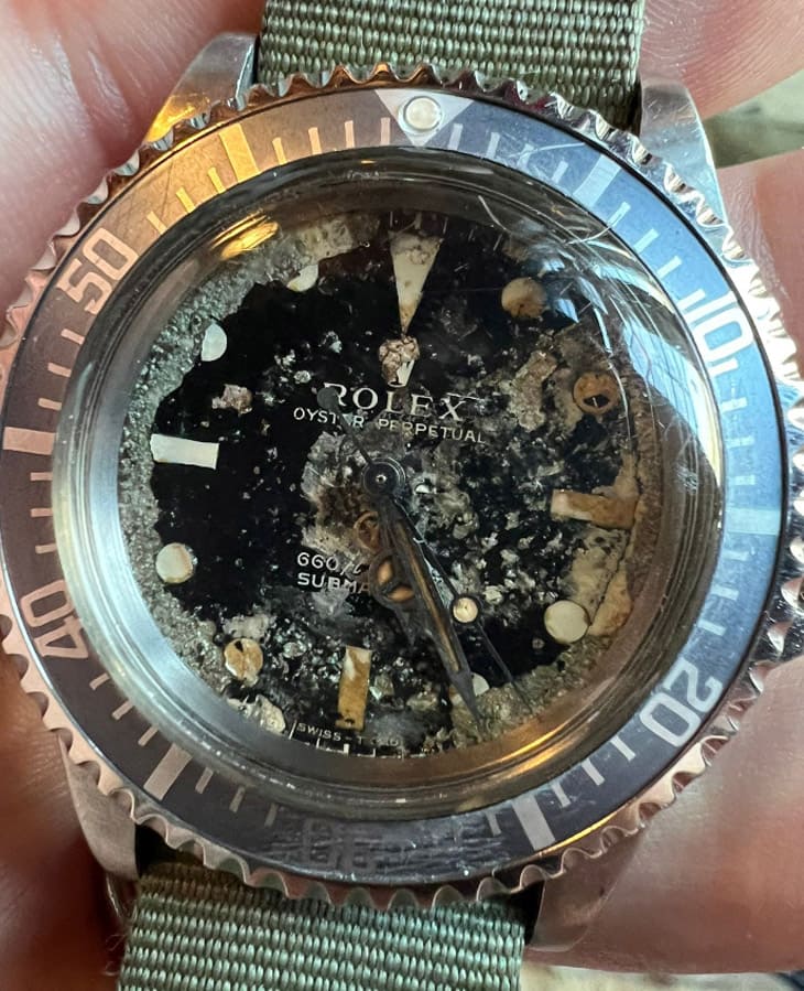 今天,MilSub在拍賣市場的身價早已今非昔比,品相良好的賣個8萬~15萬英鎊(約合台幣340萬~630萬)並不罕見,根據拍賣行與研究者的推估,當年英國國防部大約訂購了1,200只,然而真正令人瞠目結舌的,是目前能被確認存在於市場與收藏圈中的,只有大約120只。換句話說,將近9成的MilSub消失了,如果把它們換算成今天的市場價值,可能高達8,000萬英鎊(約合台幣33億多),那麼這些錶到底去了哪裡?