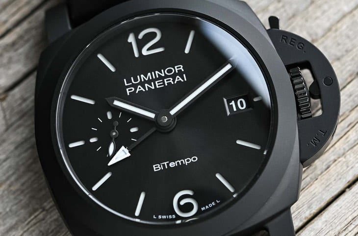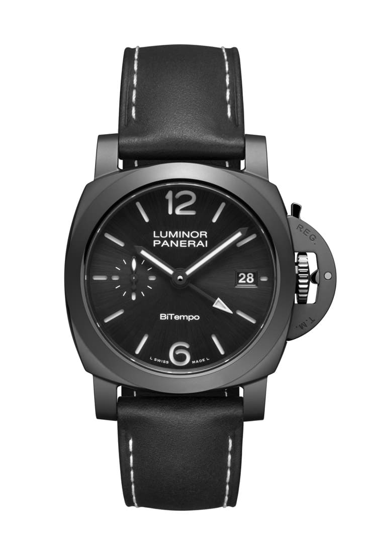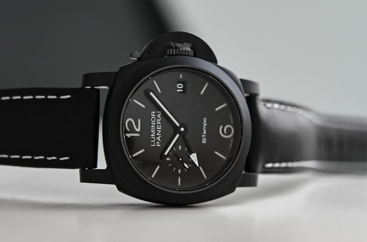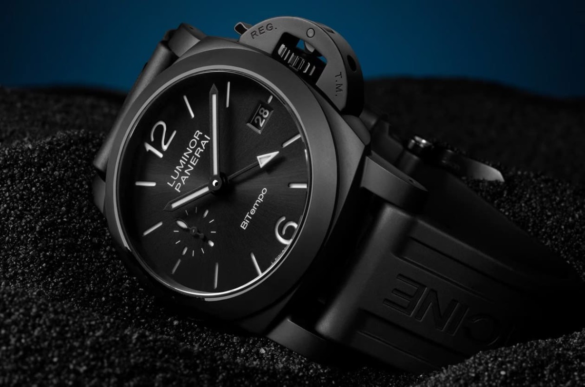 ▲沛納海首款40mm全陶瓷Luminor,黑色噴砂陶瓷搭配鈦金屬底蓋,兼顧輕量佩戴感與300米專業防水性能。Source:Monochrome Watches
