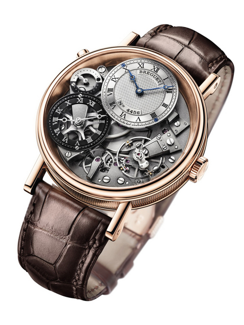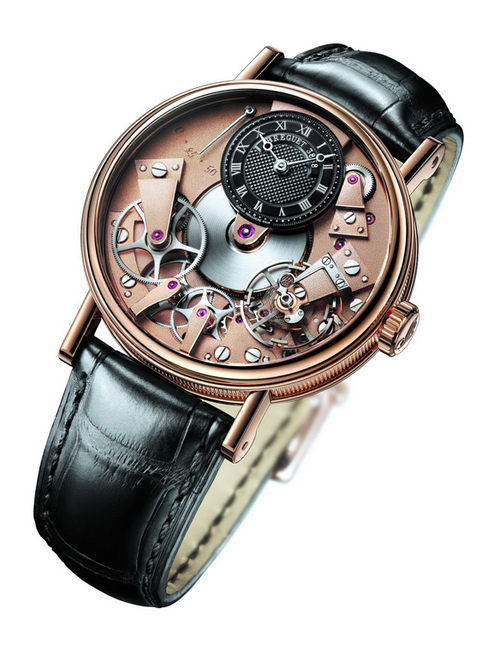 Tradition系列結合紀念性外觀設計與先進製作工藝,堪稱最極致典雅的完美之作,延續優異傳統,無愧寶璣之名,Sir David Lionel Salomons曾說:「To carry a fine Breguet watch is to feel that you have brains of a genius in your watch。」此話印證寶璣超凡的工藝技術。回顧2005年所推出的Tradition 7027,一登場即獲得日內瓦鐘錶大賞的評審團特別獎等殊榮,此系列實現了結合過去巧思與未來精神的挑戰性目標。透明藍寶石面盤及底盤一同點亮了機芯的美學質素與傑出設計;革命性機芯架構,包含夾板、支架、齒輪與其他零件,首次同時呈現於手錶正反兩面。這只擁有當代精美外觀的手錶,採用霧面噴砂處理技術,這一工法必須仰賴工藝師的豐富經驗與高超技巧,才能達到均勻一致的效果,其對稱橋板帶來絕佳的視覺和諧效果,令人回想起「定製錶」(Souscription) 機芯獨特設計,巧妙配置與前衛風格,承兌了機械結構與美學相協調的原則。此外,其搭載的全新避震裝置結合了當代避震技術的優勢,以及類似寶璣大師於18世紀時所採用的扭轉片簧而獲得現代專利,更利用顏色對比使「降落傘式避震裝置」具有極高的辨識性。而結合複雜設計與現代功能的全新錶款,更於近期陸續加入Tradition系列。此系列代表著寶璣今天的成就更勝以前,其創新的活力與睿智,展示了品牌對未來的展望,以及如何為未來提供技術發展,確立了寶璣領導潮流的先驅角色。