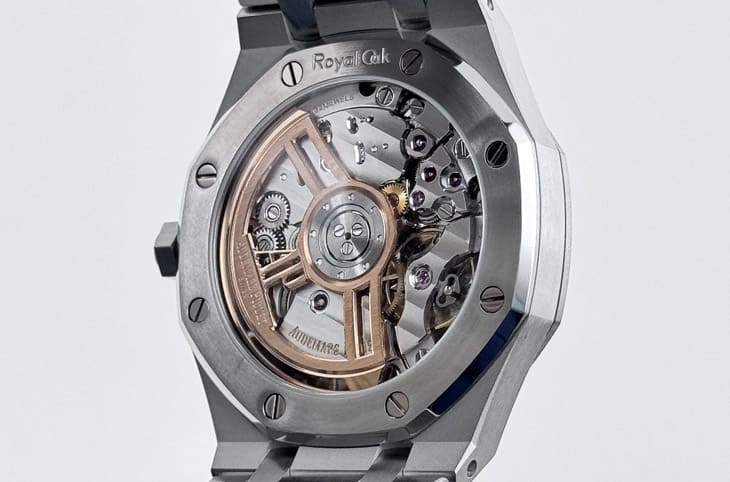 內在的機械工藝也是支撐其頂級地位的關鍵,這款手錶搭載愛彼主力的4302自動上鍊機芯,配置32顆寶石與257枚零件,震頻達到每小時28,800次,對於重視實用性的現代收藏家來說,其70小時的動力儲存意味著即便週末將錶取下,週一佩戴時依然精準走時。由藍寶石水晶底蓋看進去,佩戴者可以欣賞到飾有日內瓦波紋的夾板、魚鱗紋打磨的基板,以及那枚象徵奢華的22K金鏤空自動盤,這種對機芯細節一絲不苟的打磨,正是頂級製錶與一般量產錶最大的分水嶺。